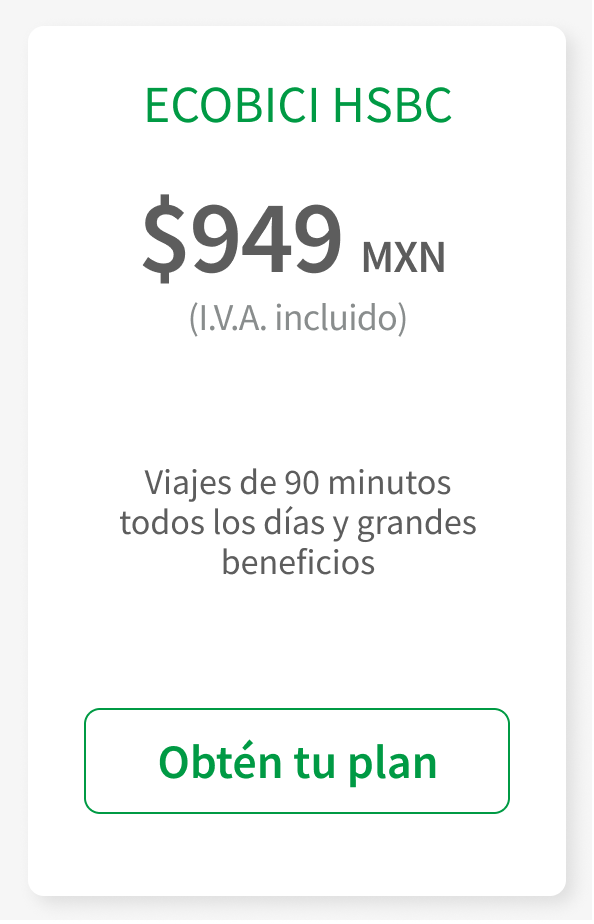 Si adquiriste un pase ECOBICI HSBC las tarifas cambian. (Todas las tarifas incluyen IVA)